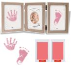 ベビーフォトフレーム 可愛い写真立て 手形 赤ちゃん 手形 足形 汚れない手形スタンプ2セット付 説明書付き キット ベビー 出産祝い ギフト メモリアル