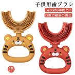 3個セット 子供用歯ブラシ 歯ブラシ 子供用 U 字型歯ブラシ 赤ちゃん用 2−6歳 6−12歳 ソフト シリコンブラシヘッド 歯ブラシ 可愛い虎デザ