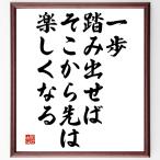 名言「一歩踏み出せば、そこから先は楽しくなる」手書き書道色紙額/受注後の毛筆直筆