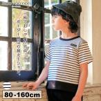 むーのんのん 子供服 男の子 Tシャツ 夏服 半袖 子ども服 こども ベビー キッズ ジュニア 綿100% ボーダー柄 ロゴワッペン ホワイト×ブラック moononnon