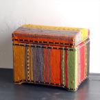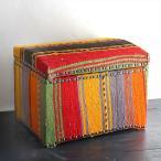 オールドキリム木製家具 宝箱Lサイズストライプボーダー W46.5xH35.5xD35cm