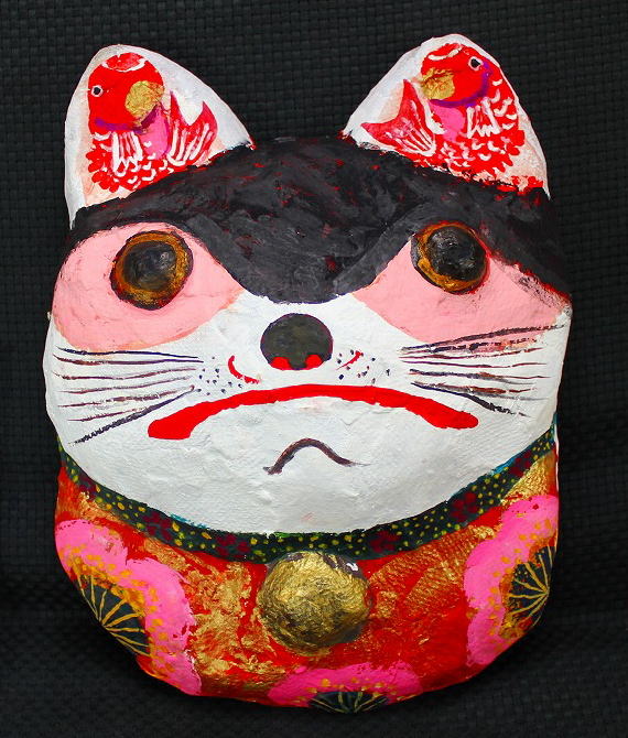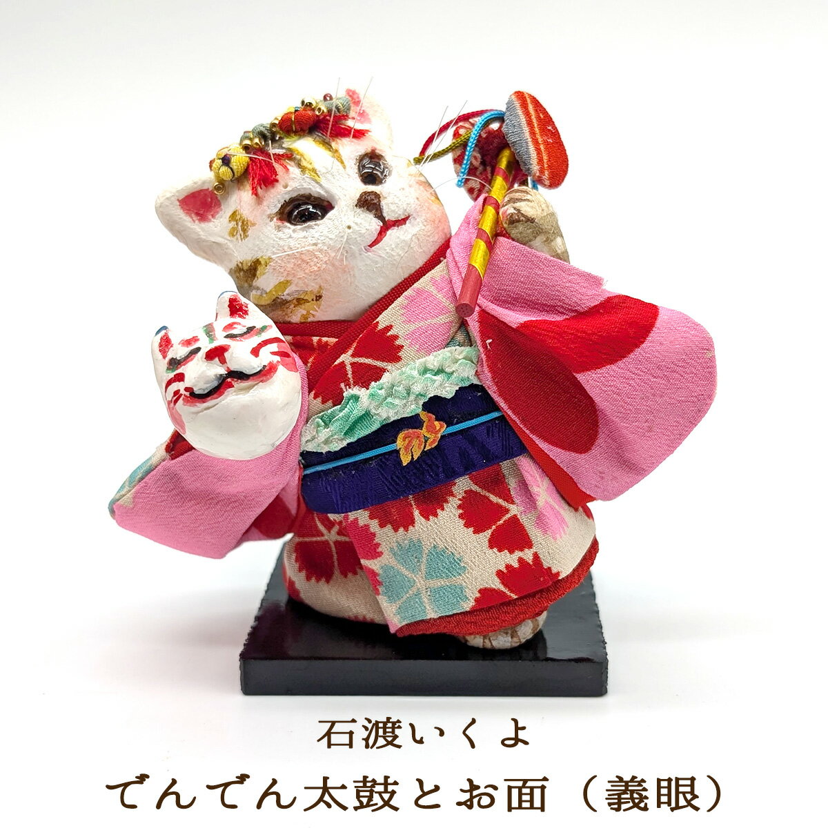 石渡 いくよ 創作猫人形 でんでん太鼓とお面(義眼) ピンクの着物 猫人形 石渡いくよ作品 石渡いくよ猫人形 石渡いくよ創作人形 石渡いくよ逸品 コンパクト かわいい 猫キャラクター 猫好き 猫インテリア 猫置物 置物人形 和雑貨 四季彩堂