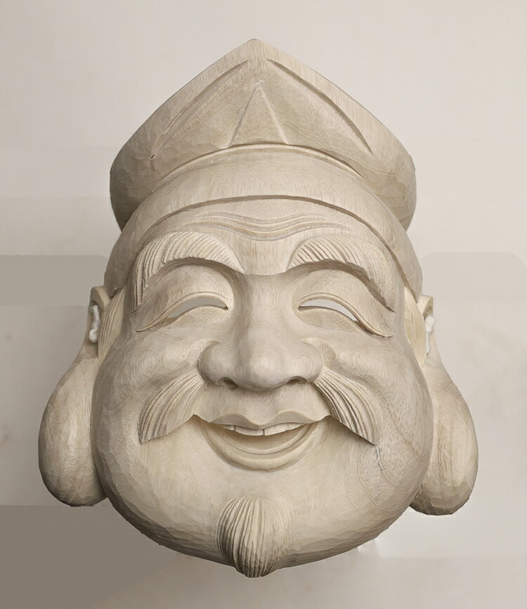 〜木彫り 恵比寿 お面〜一刀彫 / 素材:楠