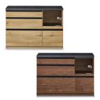 キッチンカウンター シアトル 幅120cm オープンタイプ コンセント オーク色 ウォールナット色 ブラック天板 収納 引出し 裏面化粧 国産 日本製 開梱 設置
