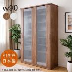 【爆買】食器棚 引き戸 幅90cm ガラス扉 キッチンボード 大容量 スライド扉 ダイニングボード 北欧 大川家具