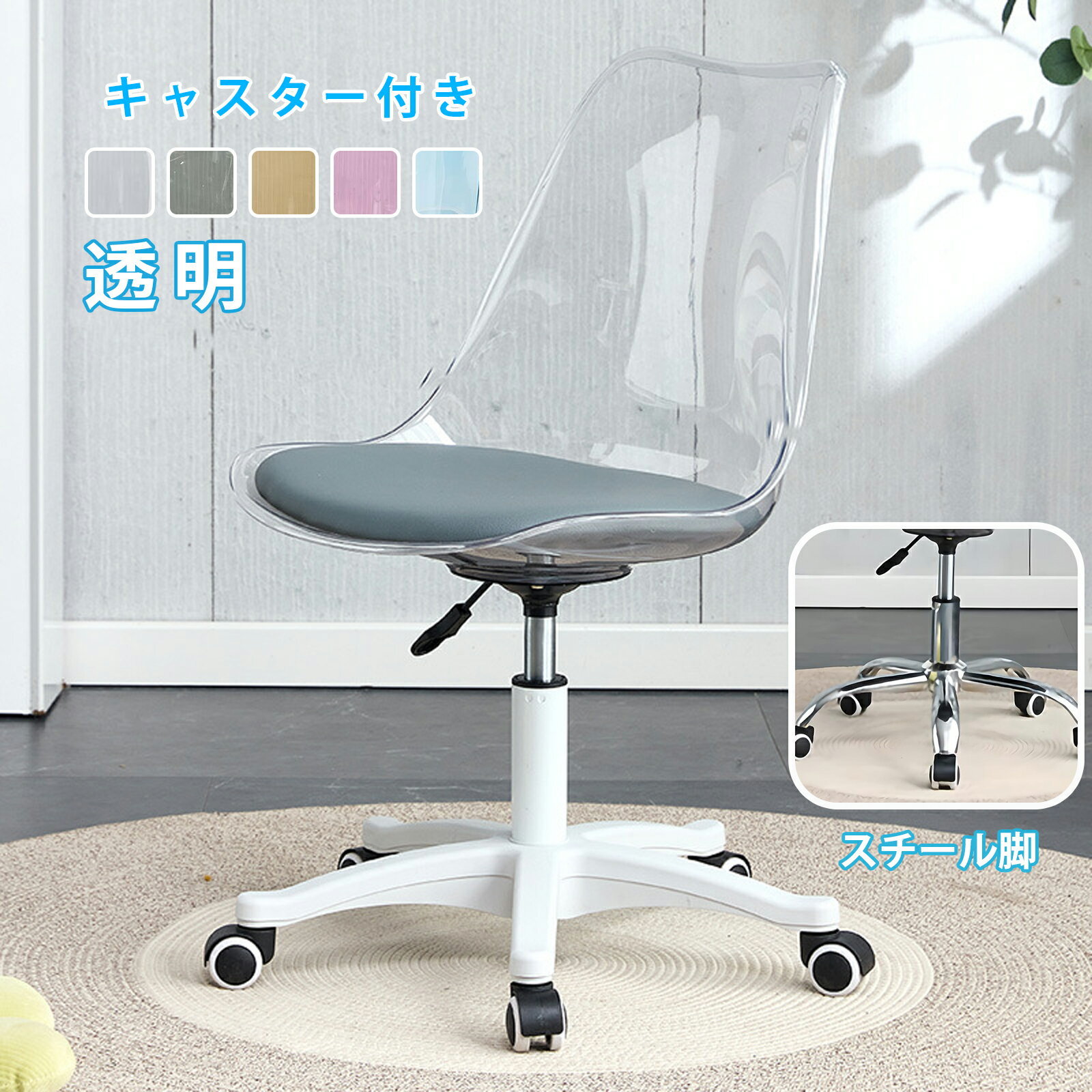 【お得な7%OFFクーポン】オフィスチェア クリア デスクチェア アクリル 椅子 透明 360度回転 一体成形椅子 高さ調節可能 座面昇降 パッド付き 静音PUキャスター付き パーティーチェア ワークチェア アームレス ホーム 送料無料