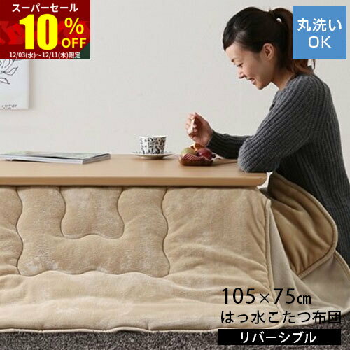 ★スーパーセール 10%OFF★はっ水 リバーシブル 省スペースこたつ布団 105×75cm用 省スペース こたつ布団 長方形 はっ水加工 フリース素材 フランネル素材 洗える 無地 こたつ掛け布団 掛けふとん コタツ布団 二重 両面仕立て シンプル インテリア おしゃれ アジアン