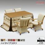 こたつ ダイニングテーブル セット 長方形 高さ調節 アコード135x80cm 6点 こたつ+省スペースこたつ布団+肘付回転椅子4脚 ハイタイプ イス付き おしゃれ[■]▽▲