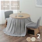 ダイニングこたつ・こたつ布団 4点セット (ハイタイプこたつ 円形 90cm丸+こたつ布団+チェア×2)