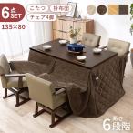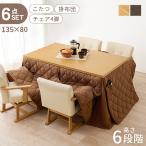 こたつ ハイタイプ セット こたつテーブル 135 ダイニングこたつ 高さ調節 こたつセット 長方形 コタツセット 6点 135×80 ミンカ+マロン