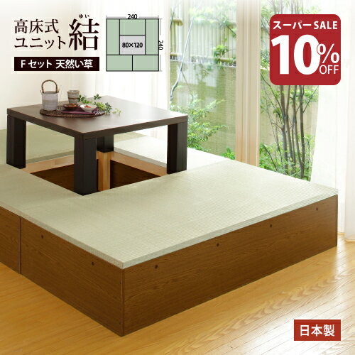 【スーパーSALE10%OFF★ポイント5倍 12/4 20:00~12/11 01:59】小上がり 畳 収納 組み合わせ ユニット畳 収納家具 高床式ユニット畳 結 収納付き 日本製 堀こたつ 「天然い草Fセット 240×240cm」 収納畳 フローリング 畳ベッド 国内製造 畳ユニット 和モダン 国産 リビング