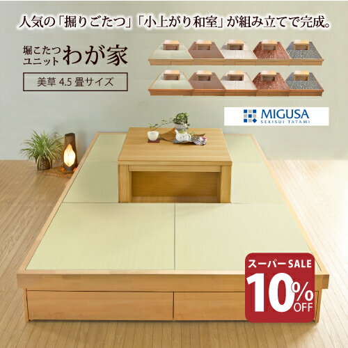 【スーパーSALE10%OFF★ポイント5倍 12/4 20:00~12/11 01:59】小上がり 畳 収納付き 堀こたつユニット「わが家」 4.5畳 掘ごたつ 美草表 日本製 247×247cm 高さ33cm 畳ベッド「美草へりなし4.5畳」送料無料 小上がり和室 組立式 和モダン DIY フローリング リビング