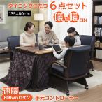 こたつ こたつセット 炬燵 ハイタイプ ダイニングこたつ 回転チェア こたつ布団 長方形 こたつテーブル 6点セット 135×80 4人掛 手元コントローラー 回転椅子