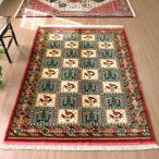 トルコ絨毯 手織りラグ 208x156cm レッド リプロダクト コーカサス地方の伝統柄