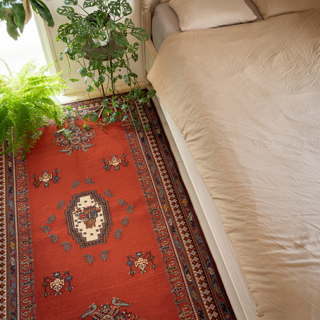 ホジャロシュナイ 手織り絨毯 194x98cm 緻密な織り レッドカーペット