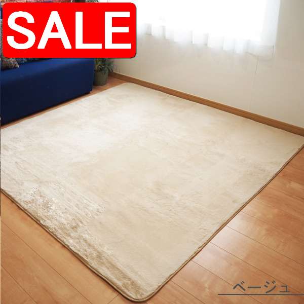 【スーパーSALE 10%OFF!】 ラビットファー風 ラグマット 絨毯 【約3畳 約185cm×230cm ベージュ】 洗える ホットカーペット 床暖房対応 『リュクシュ』 沖縄 離島への配送不可