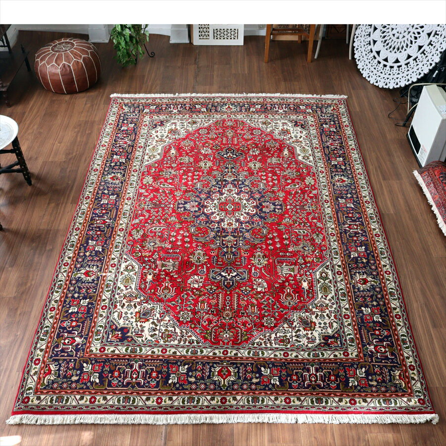 【15%OFFクーポン対象】ペルシャ絨毯 タブリーズ産 188×130cm ワインレッド/ネイビーブルー メダリオン マヒ