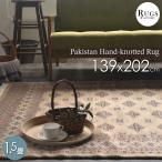 絨毯 パキスタン絨毯 じゅうたん 手織り 段通 緞通 ラグ カーペット おしゃれ 約 140x200cm 1畳半 1.5畳 ウール アンティーク レトロ ベージュ ゴールド 和室