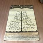 ギャッベ イラン産手織りラグ 140x102cm ナチュラルアイボリー 連続する生命の木