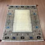 ギャッベ イラン産 手織り 120x83cm グレー&アイボリー