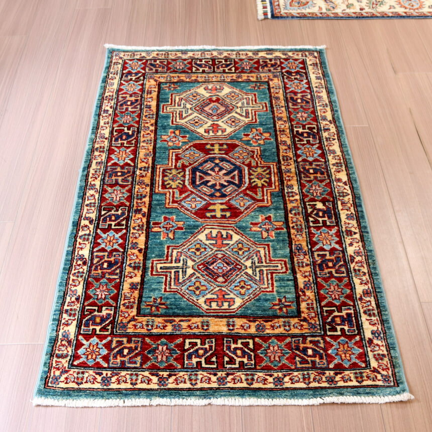 スターカザック コーカサス地方の伝統柄 83x69cm 手織りじゅうたん 細かな織り地