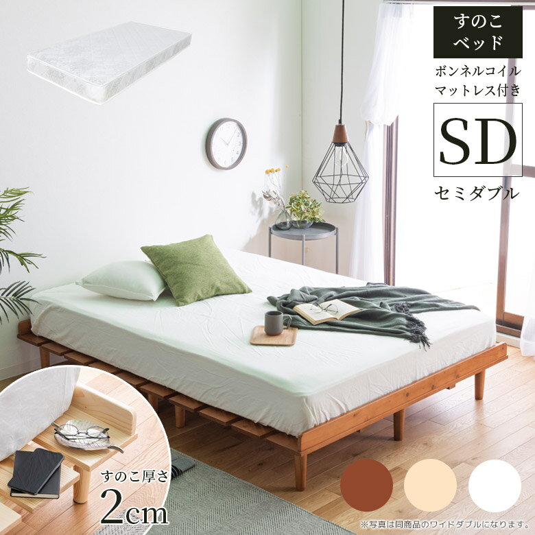 【全商品に使える2%offクーポンあり!!】 セミダブルベッド マットレス付き すのこ ベッドフレーム 北欧 おしゃれ セミダブル ローベッド ベッド すのこベッド マットレスセット マット付き パイン材 無垢材 分割式