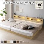 お客様組立 日本製 ベッド フレーム マットレス付き ワイドキング200(シングル×2台)ローベッド 連結ベッド 高さ調整 国産 ベッド下収納 ヘッドボード 宮付き コンセント 照明 ライト すのこベッド 家族 夫婦 ファミリーベッド スタンダードポケットコイルマットレス付き