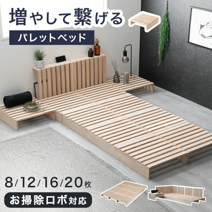 【正午~クーポン10%引】 組み換え自由自在 パレットベッド 8枚 12枚 16枚 20枚 完成品 シングルベッド ダブルベッド ロボット掃除機対応 天然木パイン シングル セミダブル ダブル ベッドフレーム ローベッド パレット 連結 ファミリーベッド すのこ ベッド ベット