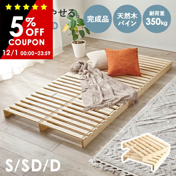 【即日発送&日時指定可】 パイン無垢材 ベッドフレーム すのこベッド シングル セミダブル ダブル 木製ベッド 天然パイン材 天然木製 低ホルムアルデヒド 脚 高さ調整 高さ調節 シングルベッド S セミダブルベッド SD ダブルベッド D