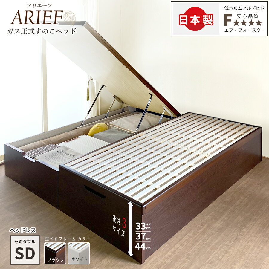 すのこベッド セミダブル 収納ベッド ヘッドレス 跳ね上げベッド 大量収納 桐すのこ ベッドセミダブルベッド 日本製 フレーム ガス圧 ガス圧ベッド 跳ね上げ 床面高さ 33cm 40cm 47cm 関東地区は組立込み #13 アリエーフ すのこ SD