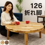 折れ脚 座卓 丸テーブル 直径126cm アカシア材 浮造り ローテーブル 完成品 円形 ちゃぶ台 高さ35 ナチュラル/ブラウン