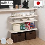 突っ張り カウンター下ラック 幅89.5cm 棚板3枚付 無段階調整 日本製 ( ラック 棚 カウンター下 収納 ディスプレイラック つっぱり 薄型 )
