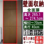 大型全面扉キャビネット つっぱり棚 高さ265.1〜274.1cm幅60〜70cm奥行40cm厚棚板(棚板厚2.5cm)