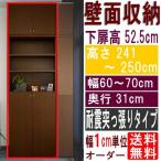 天井つっぱり壁面書庫 シェルフ 高さ241〜250cm幅60〜70cm奥行31cm 下扉高さ109.5cm