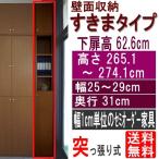 天井つっぱり隙間収納 シェルフ 高さ265.1〜274.1cm幅25〜29cm奥行31cm厚棚板(棚板厚2.5cm) 下扉高さ62.6cm