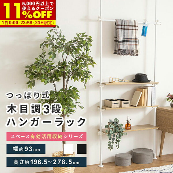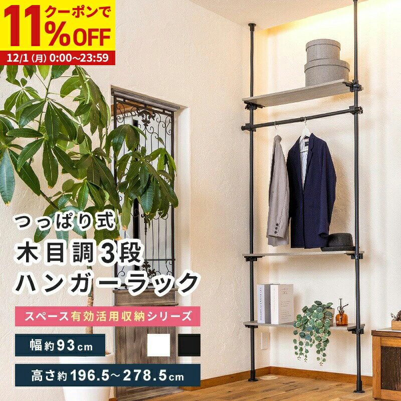 【11%OFFクーポン配布中★12/1に使える】 突っ張りラック ラック つっぱり ハンガーラック 衣類収納 ハンガーポール オープンラック 伸縮 パイプハンガー 突っ張り 衣類 コート 上着 壁面収納 白 黒 ホワイト おしゃれ