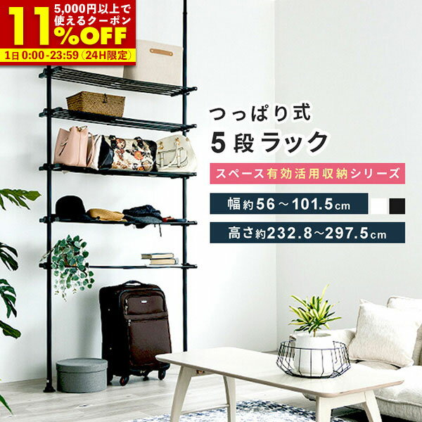 【クーポンで11%OFF★12/1 0:00〜23:59】 突っ張り5段ラック ラック 収納家具 突っ張り棚 突っ張り棒 頑丈 つっぱり 支柱高さ伸縮 ヨコ幅伸縮 ラック高さ無段階調整 壁面収納 キッチン収納 リビング収納幅60 幅90