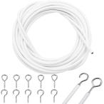 カーテン ワイヤー ロープ レール 5m 吊り下げ フック付き 誕生日 飾り パーテーション 目隠し 仕切り (ホワイト, 5m)