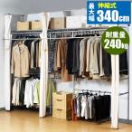 洋服収納 ワードローブ 突っ張り クローゼット ハンガーラック 2段 大型 コートハンガー 薄型 伸張式 壁面 上棚 衣類 服 ラック