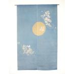 のれん 麻 うさぎ 月 水色 絞り 手染め 和風モダン 兎