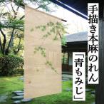 麻のれん 「青もみじ」 手描きのれん のれん 本麻 万葉舎 ロング丈 青紅葉 もみじ 紅葉 生成り 日本製 タペストリー インテリア 暖簾 麻100% 初夏 88cm×150cm