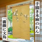 【送料無料】のれん 手描きのれん 薔薇に文鳥 麻100% 88×150cm 本麻 暖簾 万葉舎