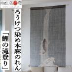 麻のれん ろうけつ染めのれん 「鯉の滝登り」本麻のれん 洛柿庵 手染め麻のれん 京都洛柿庵 鯉 滝登り 麻100% タペストリー 立身出世 心願成就 88×150cm
