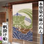 麻のれん 「帆掛け船」 本型染めのれん のれん 本麻 万葉舎 寶船 宝船 たからぶね 海 インテリア 暖簾 麻100% 本麻のれん タペストリー 縁起物 88cm×150cm