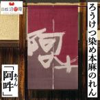 麻のれん ろうけつ染めのれん 「阿吽」のれん 暖簾 本麻のれん 本麻 洛柿庵 あうん 女流書家・鷺游 日本製 手染め麻のれん 赤紫色 インテリア 麻100% 88×150cm