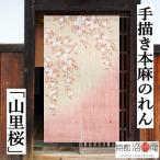 麻のれん 手描きのれん 「山里桜」本麻のれん のれん 暖簾 洛柿庵 ぼかし染め 麻 ピンク 枝垂れ桜 手染め インテリア 麻100% タペストリー さくら 桜 88×150cm
