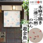 麻のれん 三連 手描きのれん 「遊金魚」 三つ割 本麻 洛柿庵 金魚 きんぎょ キンギョ 洛粋 のれん 日本製 インテリア リビング 玄関 京のれん 暖簾 麻100% 夏 和柄 和風 和雑貨 タペストリー レトロ 縁起物 プレゼント 贈り物 麻 120cm×120cm 送料無料