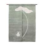 麻のれん 蛙(かえる) 灰緑 和風なおしゃれをモダンに演出 W86xH120cm