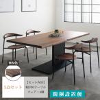 5点セット WN色 幅200テーブル+チェア×4 ダイニングセット 開梱設置 ダイニング シンプル ウォールナット アイアン 一本脚 耳付き 無垢材 天然木