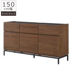 キャビネット リビング収納 サイドボード 幅150 ウォールナット突板 アイアン脚 ブラックアイアン ウレタン塗装 お掃除ロボット対応
